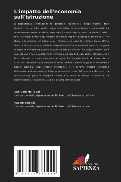 La dispendiosità e l'incapacità dei genitori di rispondere ai bisogni materiali degli studenti, tra cui cibo, vestiti, igiene e fornitura di attrezzature e cancelleria, ha indubbiamente avuto un effetto negativo sul morale degli studenti, rendendoli deboli, gelosi e confusi di fronte agli studenti che hanno maggiori capacità economiche. Il loro sforzo e l'espressione di interesse per l'emergere di capacità e talenti ha un effetto diretto e indiretto, e se gli studenti in queste condizioni economiche sono stati in grado di acquisire competenze e avere un cambiamento positivo nel loro comportamento, sono un'eccezione e non la regola. Molti criminologi ed esperti di educazione ritengono che i futuri criminali si stiano preparando ad agire dietro questi banchi di scuola. Se le istituzioni caritatevoli e le persone di buona volontà saranno in grado di soddisfare i bisogni essenziali degli studenti svantaggiati e il governo presterà attenzione all'importanza di approvare un bilancio per coprire i costi dell'istruzione dei poveri, la nostra società godrà di maggiore sicurezza e salute ed eviterà le anomalie. La discriminazione, il divario di classe e la povertà saranno evitati.