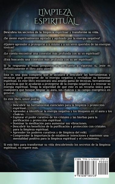 Descubra los secretos de la limpieza espiritual y transforme su vida. ¿Se siente espiritualmente agotado y agobiado por la energía negativa? ¿Quiere aprender a protegerse a sí mismo y a sus seres queridos de las energías tóxicas? ¿Le cuesta encontrar una conexión más profunda con su yo espiritual? ¿Está buscando una conexión más profunda con su ser espiritual? Si la respuesta a estas preguntas es un fuerte y vigoroso sí, ¡este es definitivamente el libro para usted! Esta es una guía completa que le ayudará a descubrir las herramientas y técnicas para protegerse de la energía negativa y revitalizar su bienestar espiritual. En este libro encontrará una amplia gama de técnicas, herramientas y prácticas que le ayudarán a protegerse de la energía negativa y a renovar su energía espiritual. Tenga la seguridad de que este es un recurso único para cualquiera que busque limpiar su aura, sus chakras y su campo energético en general. En este libro, usted podrá: Descubrir las herramientas esenciales para la limpieza y protección espiritual. Aprender a identificar la energía negativa y los bloqueos en el aura y los chakras. Explorar el poder curativo de los cristales y las hierbas para la purificación y protección espiritual. Dominar la meditación para aumentar sus vibraciones. Descubrir los beneficios de la purificación y protección con cristales para la limpieza espiritual. Aprender los poderes curativos y de limpieza del reiki. Comprender la importancia de establecer intenciones y mantener una mentalidad positiva para la limpieza espiritual y el crecimiento. Si está listo para transformar su vida descubriendo los secretos de la limpieza espiritual, no espere más.