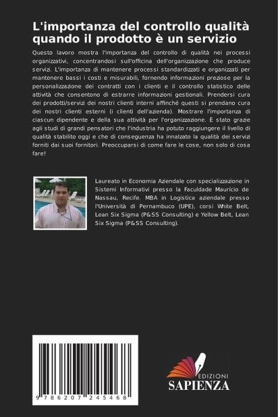 Questo lavoro mostra l'importanza del controllo di qualità nei processi organizzativi, concentrandosi sull'officina dell'organizzazione che produce servizi. L'importanza di mantenere processi standardizzati e organizzati per mantenere bassi i costi e misurabili, fornendo informazioni preziose per la personalizzazione dei contratti con i clienti e il controllo statistico delle attività che consentono di estrarre informazioni gestionali. Prendersi cura dei prodotti/servizi dei nostri clienti interni affinché questi si prendano cura dei nostri clienti esterni (i clienti dell'azienda). Mostrare l'importanza di ciascun dipendente e della sua attività per l'organizzazione. È stato grazie agli studi di grandi pensatori che l'industria ha potuto raggiungere il livello di qualità stabilito oggi e che di conseguenza ha innalzato la qualità dei servizi forniti dai suoi fornitori. Preoccuparsi di come fare le cose, non solo di cosa fare!