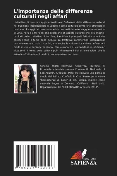 L'obiettivo di questo saggio è analizzare l'influenza delle differenze culturali nel business internazionale e vedere il tema culturale come una strategia di business. Il saggio si basa su aneddoti raccolti durante viaggi e osservazioni in Cina, Perù e altri Paesi che esplorano gli aspetti culturali che influenzano i risultati delle trattative. A tal fine, identifica i principali fattori comuni che costituiscono il tema della cultura. Le trattative commerciali internazionali non attraversano solo i confini, ma anche le culture. La cultura influenza il modo in cui le persone pensano, comunicano e si comportano in particolari situazioni. Il tema della cultura può influenzare i tipi di transazioni che le aziende effettuano e il modo in cui negoziano con loro.