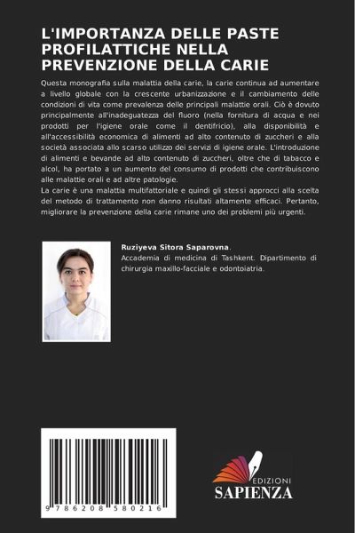 Questa monografia sulla malattia della carie, la carie continua ad aumentare a livello globale con la crescente urbanizzazione e il cambiamento delle condizioni di vita come prevalenza delle principali malattie orali. Ciò è dovuto principalmente all'inadeguatezza del fluoro (nella fornitura di acqua e nei prodotti per l'igiene orale come il dentifricio), alla disponibilità e all'accessibilità economica di alimenti ad alto contenuto di zuccheri e alla società associata allo scarso utilizzo dei servizi di igiene orale. L'introduzione di alimenti e bevande ad alto contenuto di zuccheri, oltre che di tabacco e alcol, ha portato a un aumento del consumo di prodotti che contribuiscono alle malattie orali e ad altre patologie. La carie è una malattia multifattoriale e quindi gli stessi approcci alla scelta del metodo di trattamento non danno risultati altamente efficaci. Pertanto, migliorare la prevenzione della carie rimane uno dei problemi più urgenti.