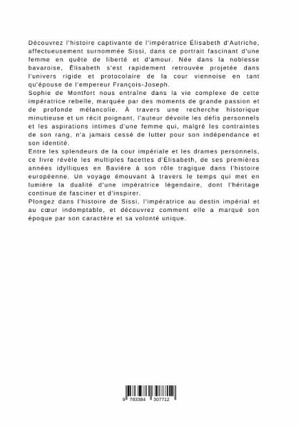Découvrez l'histoire captivante de l'impératrice Élisabeth d'Autriche, affectueusement surnommée Sissi, dans ce portrait fascinant d'une femme en quête de liberté et d'amour. Née dans la noblesse bavaroise, Élisabeth s'est rapidement retrouvée projetée dans l'univers rigide et protocolaire de la cour viennoise en tant qu'épouse de l'empereur François-Joseph.Sophie de Montfort nous entraîne dans la vie complexe de cette impératrice rebelle, marquée par des moments de grande passion et de profonde mélancolie. À travers une recherche historique minutieuse et un récit poignant, l'auteur dévoile les défis personnels et les aspirations intimes d'une femme qui, malgré les contraintes de son rang, n'a jamais cessé de lutter pour son indépendance et son identité.Entre les splendeurs de la cour impériale et les drames personnels, ce livre révèle les multiples facettes d'Élisabeth, de ses premières années idylliques en Bavière à son rôle tragique dans l'histoire européenne. Un voyage émouvant à travers le temps qui met en lumière la dualité d'une impératrice légendaire, dont l'héritage continue de fasciner et d'inspirer.Plongez dans l'histoire de Sissi, l'impératrice au destin impérial et au coeur indomptable, et découvrez comment elle a marqué son époque par son caractère et sa volonté unique.