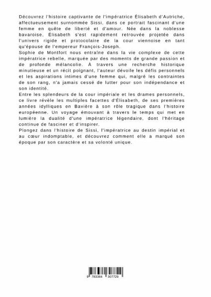 Découvrez l'histoire captivante de l'impératrice Élisabeth d'Autriche, affectueusement surnommée Sissi, dans ce portrait fascinant d'une femme en quête de liberté et d'amour. Née dans la noblesse bavaroise, Élisabeth s'est rapidement retrouvée projetée dans l'univers rigide et protocolaire de la cour viennoise en tant qu'épouse de l'empereur François-Joseph.Sophie de Montfort nous entraîne dans la vie complexe de cette impératrice rebelle, marquée par des moments de grande passion et de profonde mélancolie. À travers une recherche historique minutieuse et un récit poignant, l'auteur dévoile les défis personnels et les aspirations intimes d'une femme qui, malgré les contraintes de son rang, n'a jamais cessé de lutter pour son indépendance et son identité.Entre les splendeurs de la cour impériale et les drames personnels, ce livre révèle les multiples facettes d'Élisabeth, de ses premières années idylliques en Bavière à son rôle tragique dans l'histoire européenne. Un voyage émouvant à travers le temps qui met en lumière la dualité d'une impératrice légendaire, dont l'héritage continue de fasciner et d'inspirer.Plongez dans l'histoire de Sissi, l'impératrice au destin impérial et au coeur indomptable, et découvrez comment elle a marqué son époque par son caractère et sa volonté unique.