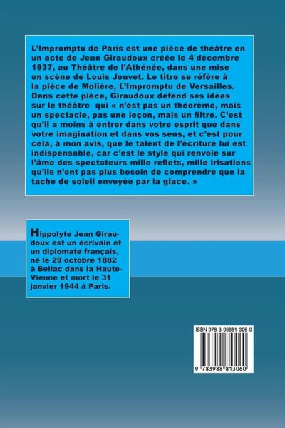 L'Impromptu de Paris est une pièce de théâtre en un acte de Jean Giraudoux créée le 4 décembre 1937, au Théâtre de l'Athénée, dans une mise en scène de Louis Jouvet. Le titre se réfère à la pièce de Molière, L'Impromptu de Versailles. Dans cette pièce, Giraudoux défend ses idées sur le théâtre qui n'est pas un théorème, mais un spectacle, pas une leçon, mais un filtre. C'est qu'il a moins à entrer dans votre esprit que dans votre imagination et dans vos sens, et c'est pour cela, à mon avis, que le talent de l'écriture lui est indispensable, car c'est le style qui renvoie sur l'âme des spectateurs mille reflets, mille irisations qu'ils n'ont pas plus besoin de comprendre que la tache de soleil envoyée par la glace.