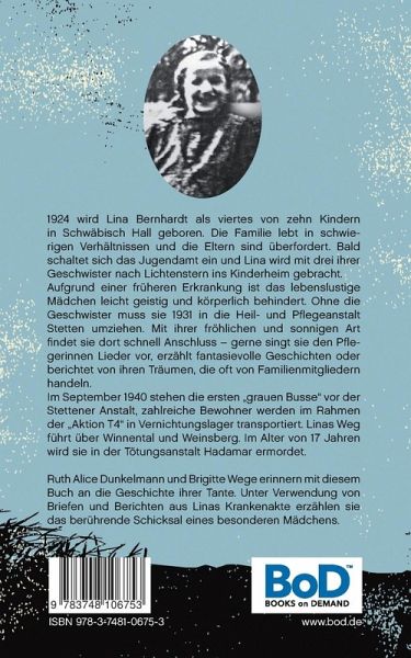 Ruth Dunkelmann und Brigitte Wege erinnern mit diesem Buch an die Geschichte ihrer Tante. Unter Verwendung von Briefen und Berichten aus Linas Krankenakte erzählen sie das berührende Schicksal eines besonderen Mädchens.