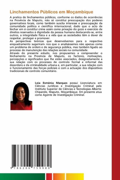 A pratica de linchamentos públicos, conforme os dados de ocorrências na Província de Maputo, não só constitui preocupação dos poderes governativos locais, como também suscita interesse e preocupação da comunidade política e científica internacional, dado que o acto de linchar em si constitui crime assim como privação do gozo e exercício de direitos reservados à dignidade da pessoa humana destacando-se, entre outros, a integridade física e a vida que as sociedades têm o dever de respeitar, proteger e promover.As perspectivas teóricas que desenvolvemos para o respectivo enquadramento sugeriram- nos que o analisássemos não apenas como um problema de ordem e de segurança pública, mas também ligado ao processo de manutenção das relações sociais na comunidade.Através do presente estudo, nos propusemos a compreender o linchamento na Província de Maputo, os factores, motivações, percepções e significados que lhe estão associados, designadamente a sua relação com os processos de controlo formal e informal das desordens e da criminalidade urbana e, em particular, a sua relação com o funcionamento das forças policiais e com a actuação dos dispositivos tradicionais de controlo comunitário.