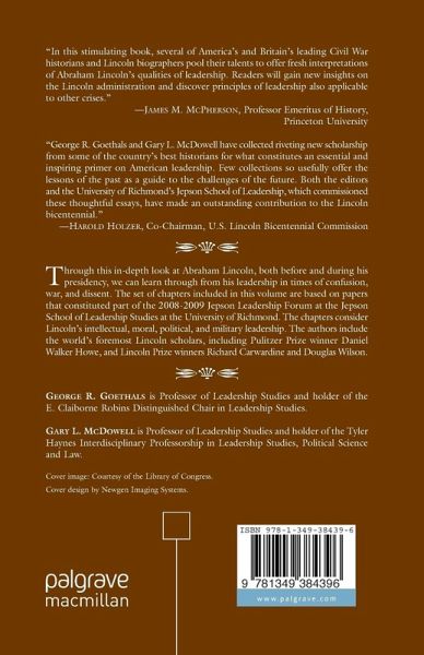 "George Goethals and Gary McDowell have collected riveting new scholarship from some of the country s best historians for what constitutes an essential and inspiring primer on American leadership. Few collections so usefully offer the lessons of the past as a guide to the challenges of the future. Both the editors and the University of Richmond s Jepson School of Leadership, which commissioned these thoughtful essays, have made an outstanding contribution to the Lincoln bicentennial." - Harold Holzer, Co-Chairman, U.S. Lincoln Bicentennial Commission.