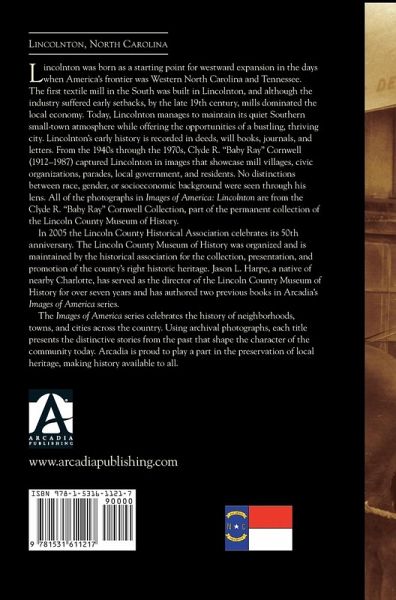 Lincolnton was born as a starting point for westward expansion in the days when America's frontier was Western North Carolina and Tennessee. The first textile mill in the South was built in Lincolnton, and although the industry suffered early setbacks, by the late 19th century, mills dominated the local economy. Today, Lincolnton manages to maintain its quiet Southern small-town atmosphere while offering the opportunities of a bustling, thriving city. Lincolnton's early history is recorded in deeds, will books, journals, and letters. From the 1940s through the 1970s, Clyde R. "Baby Ray" Cornwell (1912-1987) captured Lincolnton in images that showcase mill villages, civic organizations, parades, local government, and residents. No distinctions between race, gender, or socioeconomic background were seen through his lens. All of the photographs in Images of America: Lincolnton are from the Clyde R. "Baby Ray" Cornwell Collection, part of the permanent collection of the Lincoln County Museum of History.