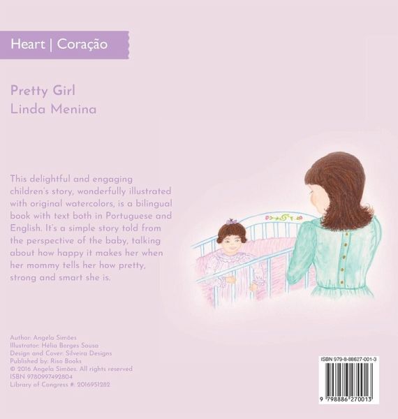 This delightful and engaging children's story, wonderfully illustrated with original watercolors, is a bilingual book with text both in Portuguese and English. Written from the perspective of a little girl, it shows how much a mother's love and her positive words mean to young ones. It's a simple story told from the perspective of the baby, talking about how happy it makes her when her mommy tells her how pretty, strong and smart she is. Intended for ages 0-3, it's a perfect book to begin teaching children Portuguese. It's also perfect for non-Portuguese-speaking parents to learn Portuguese right along with their child! "I'm third-generation Portuguese-American, so I'm not fluent in Portuguese," says Angela Costa Simoes, the author. "We want our daughter to learn Portuguese, but reading her a book all in Portuguese was very difficult for me. Having a bilingual book not only allows me to participate in my daughter learning Portuguese, but I get to learn something as well! I hope other parents will enjoy the same experience." The book, in English and Portuguese, is appropriate for children ages 0 to 3, both as a read-to, and as an early primer for both English and Portuguese. Pretty Girl - Linda Menina is the ideal gift for your children, grandchildren and other young members of your family. The author is a native Northern Californian and was raised in Sacramento. She can be reached for occasional book signings and speaking engagements.