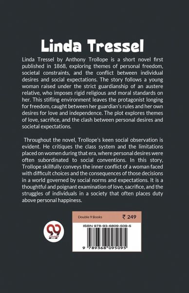 Linda Tressel by Anthony Trollope is a short novel first published in 1868, exploring themes of personal freedom, societal constraints, and the conflict between individual desires and social expectations. The story follows a young woman raised under the strict guardianship of an austere relative, who imposes rigid religious and moral standards on her. This stifling environment leaves the protagonist longing for freedom, caught between her guardian's rules and her own desires for love and independence. The plot explores themes of love, sacrifice, and the clash between personal desires and societal expectations. Throughout the novel, Trollope's keen social observation is evident. He critiques the class system and the limitations placed on women during that era, where personal desires were often subordinated to social conventions. In this story, Trollope skillfully conveys the inner conflict of a woman faced with difficult choices and the consequences of those decisions in a world governed by social norms and expectations. It is a thoughtful and poignant examination of love, sacrifice, and the struggles of individuals in a society that often places duty above personal happiness.