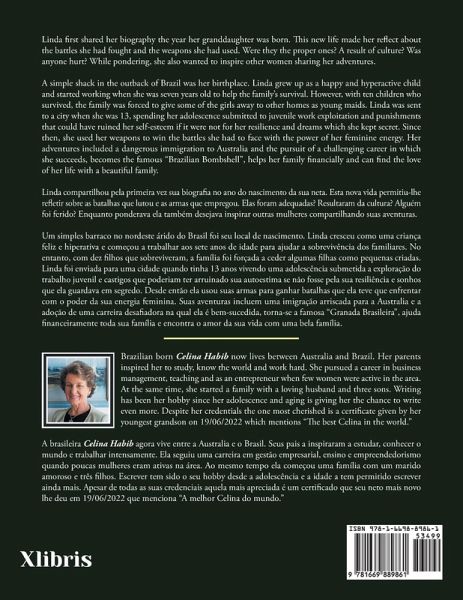 Linda first shared her biography the year her granddaughter was born. This new life made her reflect about the battles she had fought and the weapons she had used. Were they the proper ones? A result of culture? Was anyone hurt? While pondering, she also wanted to inspire other women sharing her adventures. A simple shack in the outback of Brazil was her birthplace. Linda grew up as a happy and hyperactive child and started working when she was seven years old to help the family's survival. However, with ten children who survived, the family was forced to give some of the girls away to other homes as young maids. Linda was sent to a city when she was 13, spending her adolescence submitted to juvenile work exploitation and punishments that could have ruined her self-esteem if it were not for her resilience and dreams which she kept secret. Since then, she used her weapons to win the battles she had to face with the power of her feminine energy. Her adventures included a dangerous immigration to Australia and the pursuit of a challenging career in which she succeeds, becomes the famous "Brazilian Bombshell", helps her family financially and can find the love of her life with a beautiful family. Linda compartilhou pela primeira vez sua biografia no ano do nascimento da sua neta. Esta nova vida permitiu-lhe refletir sobre as batalhas que lutou e as armas que empregou. Elas foram adequadas? Resultaram da cultura? Alguém foi ferido? Enquanto ponderava ela também desejava inspirar outras mulheres compartilhando suas aventuras. Um simples barraco no nordeste árido do Brasil foi seu local de nascimento. Linda cresceu como uma criança feliz e hiperativa e começou a trabalhar aos sete anos de idade para ajudar a sobrevivência dos familiares. No entanto, com dez filhos que sobreviveram, a família foi forçada a ceder algumas filhas como pequenas criadas. Linda foi enviada para uma cidade quando tinha 13 anos vivendo uma adolescência submetida a exploração do trabalho juvenil e castigos que poderiam ter arruinado sua autoestima se não fosse pela sua resiliência e sonhos que ela guardava em segredo. Desde então ela usou suas armas para ganhar batalhas que ela teve que enfrentar com o poder da sua energia feminina. Suas aventuras incluem uma imigração arriscada para a Australia e a adoção de uma carreira desafiadora na qual ela é bem-sucedida, torna-se a famosa "Granada Brasileira", ajuda financeiramente toda sua família e encontra o amor da sua vida com uma bela família.