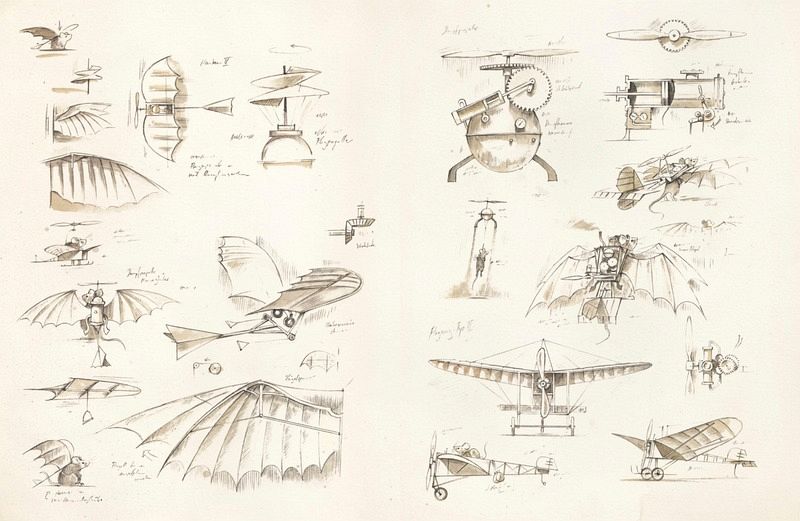 Charlie ist nicht irgendeine Maus, er ist sogar eine ganz schlaue Maus. Er wird sich Konstruktionszeichnungen machen und diese dann in die Wirklichkeit umsetzen, er wird sich einen Flugapparat bauen.
