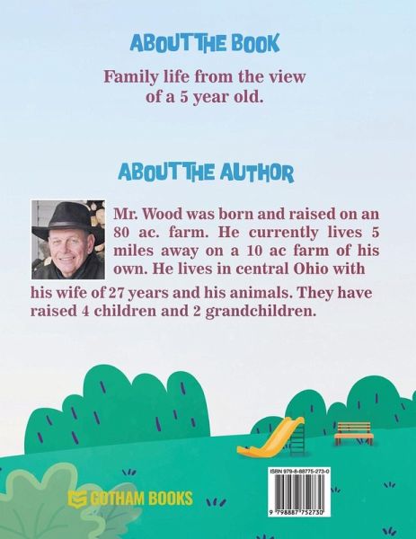 Family life from the view of a 5 yr old. About The Author Mr. Wood was born and raised on an 80 ac. farm. He currently lives 5 miles away on a 10 ac farm of his own. He lives in central Ohio with his wife of 27years and his animals. They have raised 4 children and 2 grand children.