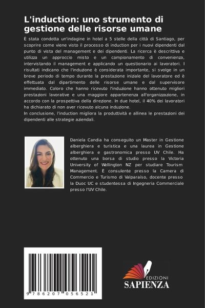 È stata condotta un'indagine in hotel a 5 stelle della città di Santiago, per scoprire come viene visto il processo di induction per i nuovi dipendenti dal punto di vista del management e dei dipendenti. La ricerca è descrittiva e utilizza un approccio misto e un campionamento di convenienza, intervistando il management e applicando un questionario ai lavoratori. I risultati indicano che l'induzione è considerata importante, si svolge in un breve periodo di tempo durante la prestazione iniziale del lavoratore ed è effettuata dal dipartimento delle risorse umane e dal supervisore immediato. Coloro che hanno ricevuto l'induzione hanno ottenuto migliori prestazioni lavorative e una maggiore appartenenza all'organizzazione, in accordo con la prospettiva della direzione. In due hotel, il 40% dei lavoratori ha dichiarato di non aver ricevuto alcuna induzione.In conclusione, l'induction migliora la produttività e allinea le prestazioni dei dipendenti alle strategie aziendali.