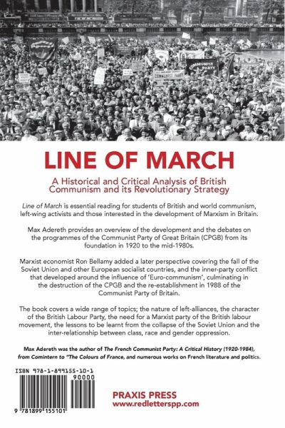 Line of March is essential reading for students of British and world communism, left-wing activists and those interested in the development of Marxism in Britain. Max Adereth provides an overview of the development and the debates on the programmes of the Communist Party of Great Britain (CPGB) from its foundation in 1920 to the mid-1980s. Marxist economist Ron Bellamy added a later perspective covering the fall of the Soviet Union and other European socialist countries, and the inner-party conflict that developed around the influence of 'Eurocommunism', culminating in the destruction of the CPGB and the re-establishment of the Communist Party of Britain. The book covers a wide range of topics; the nature of left-alliances, the character of the British Labour Party, the need for a Marxist party of the British labour movement, the lessons to be learnt from the collapse of the Soviet Union and the inter-relationship between class, race and gender oppression. The book has been revised from its original publication in 1994 and includes a foreword by Kenny Coyle on developments over the past 20 years. The book is published to mark the centenary of the foundation of the Communist Party in Britain.