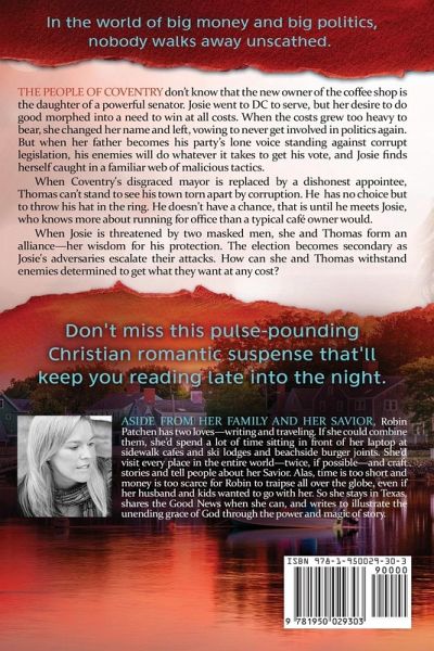 Large Print Edition! In the world of big money and big politics, nobody walks away unscathed. The people of Coventry never suspect that Josie Smith, owner of the local coffee shop, is the daughter of a powerful senator. She went to Washington to serve constituents, but her desire to do good morphed into a desire to win at all costs. When one of those costs grew too heavy to bear, she changed her name and left DC, vowing to never get involved in politics again. But when her father becomes his party's lone voice standing against corrupt legislation, his enemies will do whatever it takes to get his vote, and Josie finds herself caught in a familiar web of malicious tactics. Thomas Windham never planned to run for office, but when Coventry's disgraced mayor is replaced by a dishonest appointee, Thomas can't stand to see his town torn apart by corruption. He feels he has no choice but to throw his hat in the ring. He doesn't have a chance in the mayoral race against the well-known politician, that is until he meets Josie, who knows more about running for office than a typical café owner would. When Josie is threatened by two masked men, she and Thomas form an alliance-her wisdom for his protection. The election becomes secondary as Josie's adversaries escalate their attacks. How can she and Thomas withstand enemies determined to get what they want at any cost? Don't miss this pulse-pounding Christian romantic suspense that'll keep you reading late into the night.