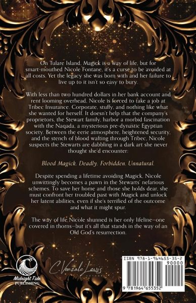 On Tulare Island, Magick is a way of life, but for smart-mouthed Nicole Fontane, it's a curse to be avoided at all costs. Yet the legacy she was born with and her failure to live up to it isn't so easy to bury. With less than two hundred dollars in her bank account and rent looming overhead, Nicole is forced to take a job at Tribec Insurance. Corporate, stuffy, and nothing like what she wanted for herself. It doesn't help that the company's proprietors, the Stewart family, harbor a morbid fascination with the Naqada, a mysterious pre-dynastic Egyptian society. Between the eerie atmosphere, heightened security, and the stench of blood wafting through Tribec, Nicole suspects the Stewarts are dabbling in a dark art she never thought she'd encounter: Blood Magick. Deadly. Forbidden. Unnatural. Despite spending a lifetime avoiding Magick, Nicole unwittingly becomes a pawn in the Stewarts' nefarious schemes. To save her home and those she holds dear, she must confront her troubled past with Magick and unlock her latent abilities, even if she's terrified of the outcome and what it might spur. The way of life Nicole shunned is her only lifeline-one covered in thorns-but it's all that stands in the way of an Old God's resurrection.
