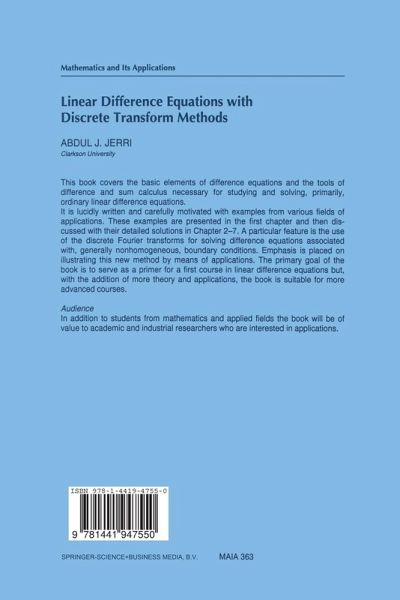 This book covers the basic elements of difference equations and the tools of difference and sum calculus necessary for studying and solv ing, primarily, ordinary linear difference equations. Examples from various fields are presented clearly in the first chapter, then discussed along with their detailed solutions in Chapters 2-7. The book is in tended mainly as a text for the beginning undergraduate course in difference equations, where the "operational sum calculus" of the di rect use of the discrete Fourier transforms for solving boundary value problems associated with difference equations represents an added new feature compared to other existing books on the subject at this introductory level. This means that in addition to the familiar meth ods of solving difference equations that are covered in Chapter 3, this book emphasizes the use of discrete transforms. It is an attempt to introduce the methods and mechanics of discrete transforms for solv ing ordinary difference equations. The treatment closely parallels what many students have already learned about using the opera tional (integral) calculus of Laplace and Fourier transforms to solve differential equations. As in the continuous case, discrete operational methods may not solve problems that are intractable by other meth ods, but they can facilitate the solution of a large class of discrete initial and boundary value problems. Such operational methods, or what we shall term "operational sum calculus," may be extended eas ily to solve partial difference equations associated with initial and/or boundary value problems.