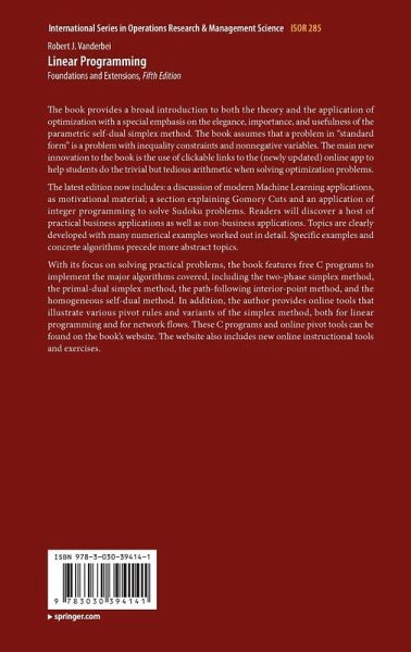With its focus on solving practical problems, the book features free C programs to implement the major algorithms covered, including the two-phase simplex method, the primal-dual simplex method, the path-following interior-point method, and and the homogeneous self-dual method. In addition, the author provides online tools that illustrate various pivot rules and variants of the simplex method, both for linear programming and for network flows. These C programs and online pivot tools can be found on the book's website. The website also includes new online instructional tools and exercises.