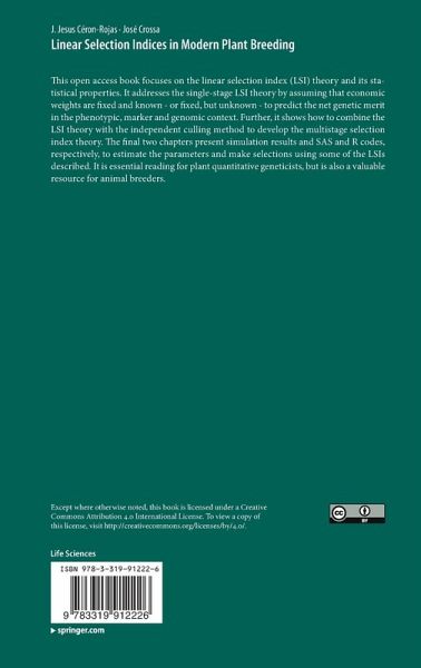 This open access book focuses on the linear selection index (LSI) theory and its statistical properties. It addresses the single-stage LSI theory by assuming that economic weights are fixed and known - or fixed, but unknown - to predict the net genetic merit in the phenotypic, marker and genomic context. Further, it shows how to combine the LSI theory with the independent culling method to develop the multistage selection index theory. The final two chapters present simulation results and SAS and R codes, respectively, to estimate the parameters and make selections using some of the LSIs described. It is essential reading for plant quantitative geneticists, but is also a valuable resource for animal breeders.