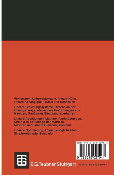 Der vorliegende Band behandelt die fiir das Studium und die spätere Unterrichtstätig keit der Lehrer an Grund-, Haupt- und Realschulen wesentlichen Themen aus dem Be reich der Linearen Algebra. Entsprechend der Zielsetzung der Reihe Mathematik flir die Lehrerausbildung haben die Verfasser auf eine relativ breite Darstellung Wert gelegt, die insbesondere durch die Dreiteilung der einzelnen Abschnitte in einen motivierenden Teil A, einen methodisch systematischen Teil B und einen praxisorientierten Teil C dem Leser den Zugang zu diesem Gebiet erleichtert. Ein erster überblickartiger Zugang zu dem jeweiligen Problemkreis wird dem Leser in den A-Teilen eröffnet. In besonders einfacher und durchsichtiger Form werden die einzelnen Probleme umrissen, Querverbindungen aufgezeigt und erste Hinweise zur Lösung gegeben. Die in den A-Teilen angeschnittenen Fragen werden in den B-Teilen exakt formuliert und systematisch gelöst. In den C-Teilen knüpfen die Verfasser an die Überlegungen aus den A-Teilen an, um dann Wege zur Übersetzung des methodisch-systematischen Teiles in die Schulpraxis aufzuzeigen. Bei der Darstellung wird ferner darauf geachtet, daß der Vektorraumbegriff als eine grundlegende mathematische Struktur bei der Behandlung von linearen Gleichungs systemen und linearen Abbildungen besonders hervortritt, um hierdurch die inneren Zusammenhänge hervorzuheben und das Verständnis zu fördern. Im Hinblick auf die Anwendungen wird neben den üblichen Themen insbesondere der Problemkreis Lineare Optimierung behandelt.· Der erste Abschnitt enthält die grundlegenden Begriffe und Sätze über den Vektorraum, die am Beispiel eines vierdimensionalen Einkaufsvektorraurns veranschaulicht werden.