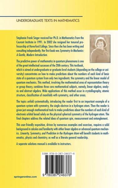 From the reviews: "Here is another book which is centered around the SO(4)-invariance of the 1/r potential. ... the present author always remains on a very solid mathematical ground. ... The author prepares carefully the mathematical ingredients (Hilbert spaces, Lie groups, Lie algebras, representations). The style of this senior-level undergraduate text is very fluent and - in the best sense - entertaining." (Evelyn Weimar-Woods, Zentralblatt MATH, Vol. 1088 (14), 2006) "It is an introductory textbook on the unitary representation theory of Lie groups, with emphasis on the important groups SO (3), SU (2), and SO (4), with the hydrogen atom as a motivating, unifying theme. The intended audience is senior-level undergraduate majors in mathematics, physics, and chemistry. Numerous exercises are provided. ... will recommend the book as supplementary reading to those students who desire to understand the mathematics at a deeper level. ... Singer's book is a very good one for undergraduate mathematics majors." (Stephen A. Fulling, American Mathematical Monthly, Vol. 114, August-September, 2007)