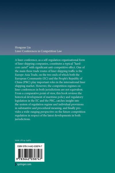 A liner conference, as a self-regulation organisational form of liner shipping companies, constitutes a typical "hard-core cartel" with significant anti-competitive effect. One of the main three trade routes of liner shipping traffic is the Europe-Asia Trade, on the two ends of which both the European Community (EC) and the People's Republic of China (PRC) play important roles in the international liner shipping market. However, the competition regimes on liner conferences in both jurisdictions are not equivalent. From a comparative point of view, this book reviews the historical development of maritime policy and regulatory legislation in the EC and the PRC, catches insight into the system of regulation regime and individual provisions in substantive and procedural meaning, and finally provides a wide-ranging perspective on the future competition regulation in respect of the latest developments in both jurisdictions.