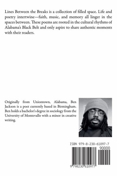 Lines Between the Breaks is a collection of filled space. Life and poetry intertwine-faith, music, and memory all linger in the spaces between. These poems are rooted in the cultural rhythms of Alabama's Black Belt and only aspire to share authentic moments with their readers.