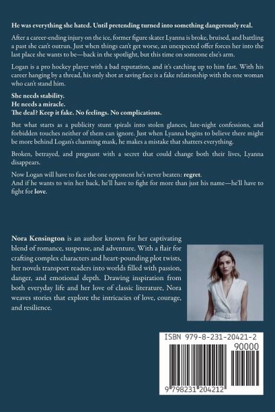 He was everything she hated. Until pretending turned into something dangerously real. After a career-ending injury on the ice, former figure skater Lyanna is broke, bruised, and battling a past she can't outrun. Just when things can't get worse, an unexpected offer forces her into the last place she wants to be-back in the spotlight, but this time on someone else's arm. Logan is a pro hockey player with a bad reputation, and it's catching up to him fast. With his career hanging by a thread, his only shot at saving face is a fake relationship with the one woman who can't stand him. She needs stability. He needs a miracle. The deal? Keep it fake. No feelings. No complications. But what starts as a publicity stunt spirals into stolen glances, late-night confessions, and forbidden touches neither of them can ignore. Just when Lyanna begins to believe there might be more behind Logan's charming mask, he makes a mistake that shatters everything. Broken, betrayed, and pregnant with a secret that could change both their lives, Lyanna disappears. Now Logan will have to face the one opponent he's never beaten: regret. And if he wants to win her back, he'll have to fight for more than just his name-he'll have to fight for love.
