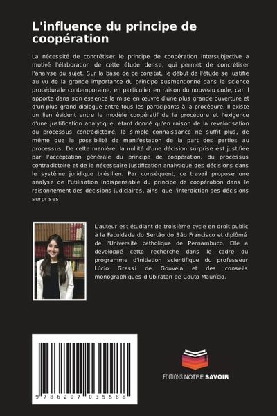 La nécessité de concrétiser le principe de coopération intersubjective a motivé l'élaboration de cette étude dense, qui permet de concrétiser l'analyse du sujet. Sur la base de ce constat, le début de l'étude se justifie au vu de la grande importance du principe susmentionné dans la science procédurale contemporaine, en particulier en raison du nouveau code, car il apporte dans son essence la mise en oeuvre d'une plus grande ouverture et d'un plus grand dialogue entre tous les participants à la procédure. Il existe un lien évident entre le modèle coopératif de la procédure et l'exigence d'une justification analytique, étant donné qu'en raison de la revalorisation du processus contradictoire, la simple connaissance ne suffit plus, de même que la possibilité de manifestation de la part des parties au processus. De cette manière, la nullité d'une décision surprise est justifiée par l'acceptation générale du principe de coopération, du processus contradictoire et de la nécessaire justification analytique des décisions dans le système juridique brésilien. Par conséquent, ce travail propose une analyse de l'utilisation indispensable du principe de coopération dans le raisonnement des décisions judiciaires, ainsi que l'interdiction des décisions surprises.