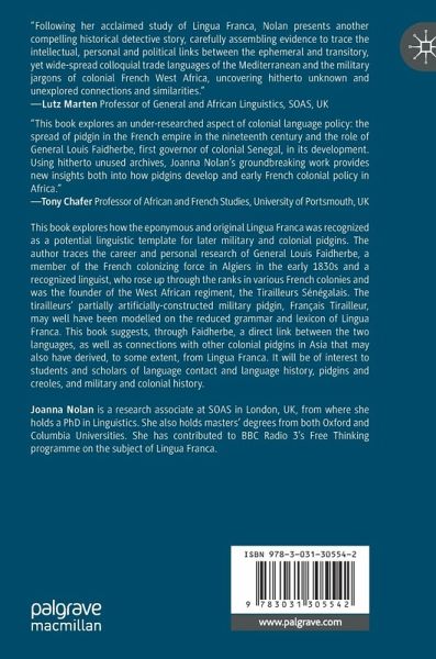This book explores how the eponymous and original Lingua Franca was recognized as a potential linguistic template for future military and colonial pidgins. The author traces the career trajectory of General Louis Faidherbe, a member of the French colonizing force in Algiers in the early 1830s and a recognized linguist, who rose up through the ranks in various African colonies and was the founder of regiments in West Africa, including the Senegal-based tirailleurs. Their artificially constructed military pidgin, Français Tirailleur, was a language modelled on the reduced grammar and lexicon of Lingua Franca. This book demonstrates the direct link between the two languages, as well as connections with other colonial pidgins in Asia that also derived to some extent from Lingua Franca. It will be of interest to students and scholars of language contact and language history, pidgins and creoles, and military and colonial history.