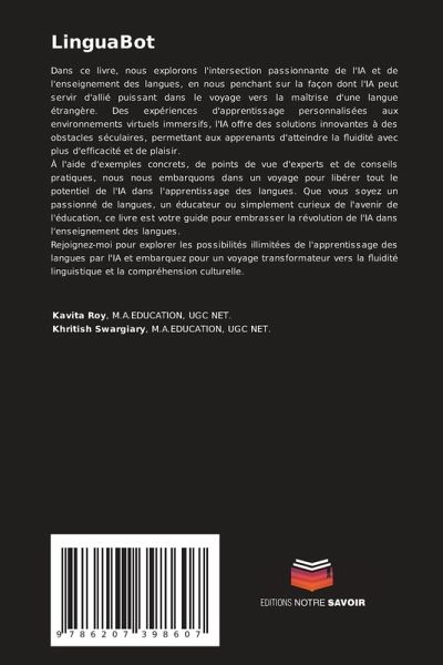 Dans ce livre, nous explorons l'intersection passionnante de l'IA et de l'enseignement des langues, en nous penchant sur la façon dont l'IA peut servir d'allié puissant dans le voyage vers la maîtrise d'une langue étrangère. Des expériences d'apprentissage personnalisées aux environnements virtuels immersifs, l'IA offre des solutions innovantes à des obstacles séculaires, permettant aux apprenants d'atteindre la fluidité avec plus d'efficacité et de plaisir.À l'aide d'exemples concrets, de points de vue d'experts et de conseils pratiques, nous nous embarquons dans un voyage pour libérer tout le potentiel de l'IA dans l'apprentissage des langues. Que vous soyez un passionné de langues, un éducateur ou simplement curieux de l'avenir de l'éducation, ce livre est votre guide pour embrasser la révolution de l'IA dans l'enseignement des langues.Rejoignez-moi pour explorer les possibilités illimitées de l'apprentissage des langues par l'IA et embarquez pour un voyage transformateur vers la fluidité linguistique et la compréhension culturelle.