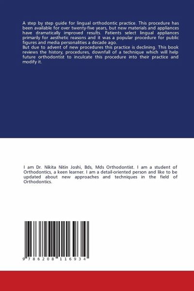 A step by step guide for lingual orthodontic practice. This procedure has been available for over twenty-five years, but new materials and appliances have dramatically improved results. Patients select lingual appliances primarily for aesthetic reasons and it was a popular procedure for public figures and media personalities a decade ago.But due to advent of new procedures this practice is declining. This book reviews the history, procedures, downfall of a technique which will help future orthodontist to inculcate this procedure into their practice and modify it.