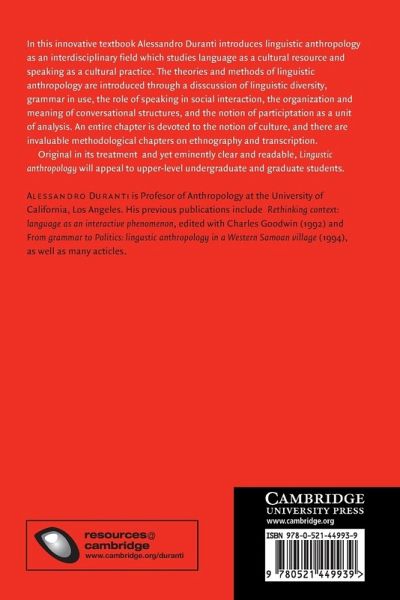An introduction to linguistic anthropology as an interdisciplinary field which studies language as a cultural resource and speaking as a cultural practice.