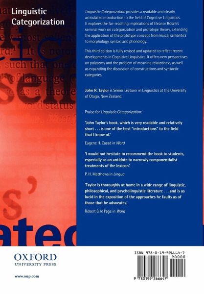This book provides a readable and clearly articulated introduction to the field of Cognitive Linguistics. It explores the far-reaching implications of Eleanor Rosch's seminal work on categorization and prototype theory, extending the application of prototype theory from lexical semantics to morphology, syntax, and phonology. The third edition is fully revised and updated to include the considerable developments in Cognitive Linguistics since 1987. It covers recent research on polysemy, meaning relatedness and metaphors, as well as expanding the discussion of syntactic categories and the relevance of computer simulations.