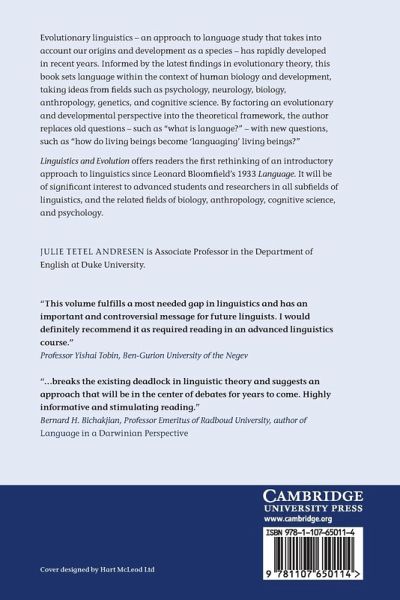 Evolutionary linguistics - an approach to language study that takes into account our origins and development as a species - has rapidly developed in recent years. Informed by the latest findings in evolutionary theory, this book sets language within the context of human biology and development, taking ideas from fields such as psychology, neurology, biology, anthropology, genetics and cognitive science. By factoring an evolutionary and developmental perspective into the theoretical framework, the author replaces old questions - such as 'what is language?' - with new questions, such as 'how do living beings become 'languaging' living beings?' Linguistics and Evolution offers readers the first rethinking of an introductory approach to linguistics since Leonard Bloomfield's 1933 Language. It will be of significant interest to advanced students and researchers in all subfields of linguistics, and the related fields of biology, anthropology, cognitive science and psychology.