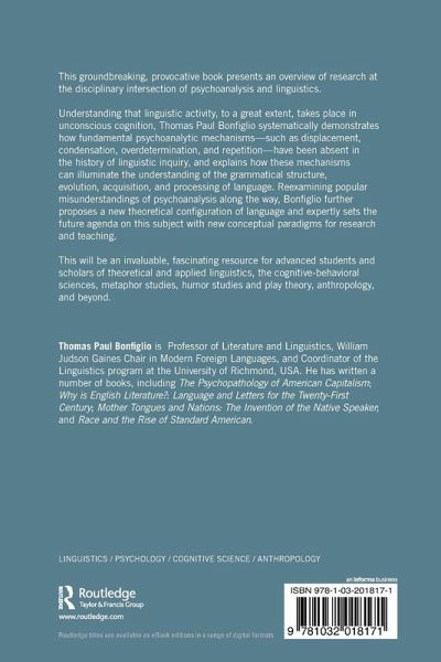Understanding that linguistic activity, to a great extent, takes place in unconscious cognition, Thomas Paul Bonfiglio systematically demonstrates how fundamental psychoanalytic mechanisms-such as displacement, condensation, overdetermination, and repetition-have been absent in the history of linguistic inquiry, and explains how these mechanisms can illuminate the understanding of the grammatical structure, evolution, acquisition, and processing of language. Reexamining popular misunderstandings of psychoanalysis along the way, Bonfiglio further proposes a new theoretical configuration of language and expertly sets the future agenda on this subject with new conceptual paradigms for research and teaching.