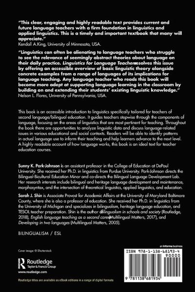 This book is an accessible introduction to linguistics specifically tailored for teachers of second language/bilingual education. It guides teachers stepwise through the components of language, focusing on the areas of linguistics that are most pertinent for teaching. Throughout the book there are opportunities to analyze linguistic data and discuss language-related issues in various educational and social contexts. Readers will be able to identify patterns in actual language use to inform their teaching and help learners advance to the next level. A highly readable account of how language works, this book is an ideal text for teacher education courses.