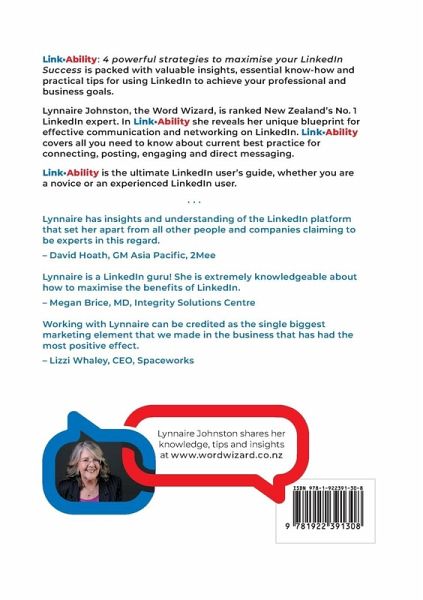 Link¿Ability: 4 powerful strategies to maximise your LinkedIn Success is packed with valuable insights, essential know-how and practical tips for using LinkedIn to achieve your professional and business goals. Lynnaire Johnston, the Word Wizard, is ranked New Zealand's No. 1 LinkedIn expert. In Link¿Ability she reveals her unique blueprint for effective communication and networking on LinkedIn. Link¿Ability covers all you need to know about current best practice for connecting, posting, engaging and direct messaging. Link¿Ability is the ultimate LinkedIn user's guide, whether you are a novice or an experienced LinkedIn user.