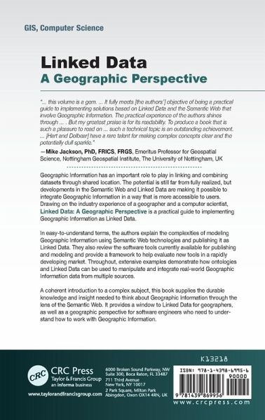 Geographic Information has an important role to play in linking and combining datasets through shared location, but the potential is still far from fully realized because the data is not well organized and the technology to aid this process has not been available. Developments in the Semantic Web and Linked Data, however, are making it possible to integrate data based on Geographic Information in a way that is more accessible to users. Drawing on the industry experience of a geographer and a computer scientist, Linked Data: A Geographic Perspective is a practical guide to implementing Geographic Information as Linked Data. Combine Geographic Information from Multiple Sources Using Linked Data After an introduction to the building blocks of Geographic Information, the Semantic Web, and Linked Data, the book explores how Geographic Information can become part of the Semantic Web as Linked Data. In easy-to-understand terms, the authors explain the complexities of modeling Geographic Information using Semantic Web technologies and publishing it as Linked Data. They review the software tools currently available for publishing and modeling Linked Data and provide a framework to help you evaluate new tools in a rapidly developing market. They also give an overview of the important languages and syntaxes you will need to master. Throughout, extensive examples demonstrate why and how you can use ontologies and Linked Data to manipulate and integrate real-world Geographic Information data from multiple sources. A Practical, Readable Guide for Geographers, Software Engineers, and Laypersons A coherent, readable introduction to a complex subject, this book supplies the durable knowledge and insight you need to think about Geographic Information through the lens of the Semantic Web. It provides a window to Linked Data for geographers, as well as a geographic perspective for software engineers who need to understand how to work with Geographic Information. Highlighting best practices, this book helps you organize and publish Geographic Information on the Semantic Web with more confidence.