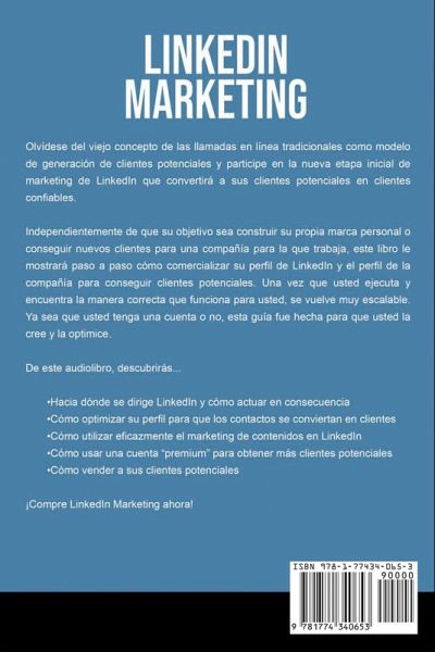 Olvídese del viejo concepto de las llamadas en línea tradicionales como modelo de generación de clientes potenciales y participe en la nueva etapa inicial de marketing de LinkedIn que convertirá a sus clientes potenciales en clientes confiables. Independientemente de que su objetivo sea construir su propia marca personal o conseguir nuevos clientes para una compañía para la que trabaja, este libro le mostrará paso a paso cómo comercializar su perfil de LinkedIn y el perfil de la compañía para conseguir clientes potenciales. Una vez que usted ejecuta y encuentra la manera correcta que funciona para usted, se vuelve muy escalable. Ya sea que usted tenga una cuenta o no, esta guía fue hecha para que usted la cree y la optimice. De este audiolibro, descubrirás: ¿ Hacia dónde se dirige LinkedIn y cómo actuar en consecuencia ¿ Cómo optimizar su perfil para que los contactos se conviertan en clientes ¿ Cómo utilizar eficazmente el marketing de contenidos en LinkedIn ¿ Cómo usar una cuenta "premium" para obtener más clientes potenciales ¿ Cómo vender a sus clientes potenciales ¡Compre LinkedIn Marketing ahora!