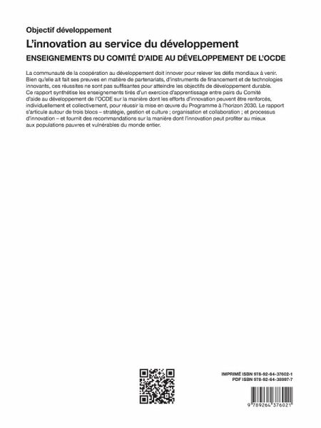 Ce rapport synthétise les enseignements tirés d'un exercice d'apprentissage entre pairs du Comité d'aide au développement de l'OCDE sur la manière dont les efforts d'innovation peuvent être renforcés, individuellement et collectivement, pour réussir la mise en oeuvre du Programme à l'horizon 2030.