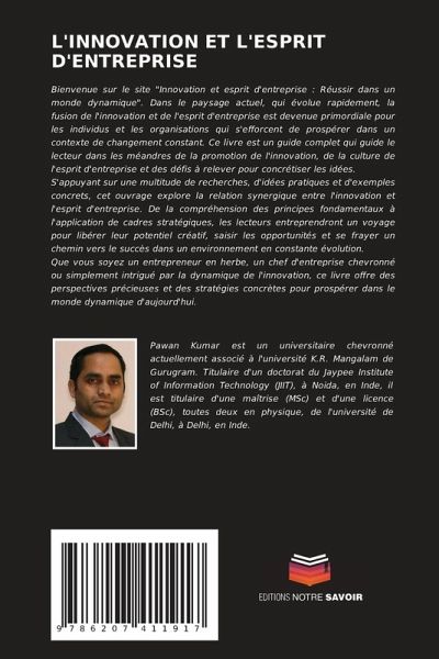 Bienvenue sur le site "Innovation et esprit d'entreprise : Réussir dans un monde dynamique". Dans le paysage actuel, qui évolue rapidement, la fusion de l'innovation et de l'esprit d'entreprise est devenue primordiale pour les individus et les organisations qui s'efforcent de prospérer dans un contexte de changement constant. Ce livre est un guide complet qui guide le lecteur dans les méandres de la promotion de l'innovation, de la culture de l'esprit d'entreprise et des défis à relever pour concrétiser les idées.S'appuyant sur une multitude de recherches, d'idées pratiques et d'exemples concrets, cet ouvrage explore la relation synergique entre l'innovation et l'esprit d'entreprise. De la compréhension des principes fondamentaux à l'application de cadres stratégiques, les lecteurs entreprendront un voyage pour libérer leur potentiel créatif, saisir les opportunités et se frayer un chemin vers le succès dans un environnement en constante évolution.Que vous soyez un entrepreneur en herbe, un chef d'entreprise chevronné ou simplement intrigué par la dynamique de l'innovation, ce livre offre des perspectives précieuses et des stratégies concrètes pour prospérer dans le monde dynamique d'aujourd'hui.