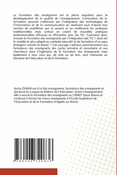 La formation des enseignants est la pierre angulaire pour le développement de la qualité de l'enseignement. L'innovation de la formation pourrait s'effectuer par l'intégration des technologies de l'information et de la communication en résolvant tout d'abord bon nombre de problèmes qui se posent et en améliorant les pratiques traditionnelles mais surtout en créant de nouvelles pratiques professionnelles efficaces et efficientes avec les TIC. Comment donc innover la formation des enseignants par l'intégration des TIC ? Quel est le modèle le plus adapté au contexte éducatif et de formation d'un pays émergent comme le Maroc ? Cet ouvrage s'adresse prioritairement aux formateurs des enseignants des cycles primaire et secondaire et aux chercheurs dans l'ingénierie de la formation des enseignants mais également à tous ceux qui, de près ou de loin, sont intéressés au domaine de l'éducation et de la formation.