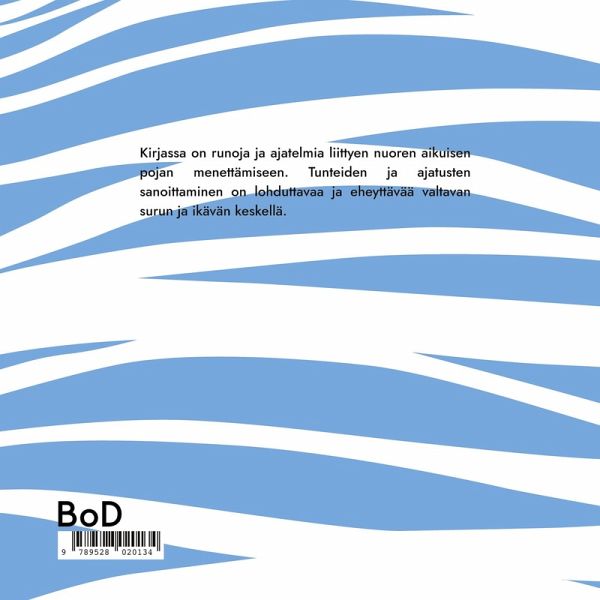 Kirjassa on runoja ja ajatelmia liittyen nuoren aikuisen pojan menettämiseen. Tunteiden ja ajatusten sanoittaminen on lohduttavaa ja eheyttävää valtavan surun ja ikävän keskellä. Kirja on kunnianosoitus pojalleni, jonka kauniit ja taidokkaat valokuvat kuvittavat tekstejä.
