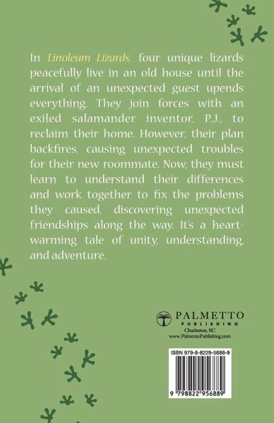 When a human disrupts the tranquil life of four house lizards, they must unite, reconcile differences, and seek help from an old friend to restore peace and harmony. Welcome to the world of Linoleum Lizards, a delightful tale of friendship, unity, and overcoming challenges. In an old, forgotten house, nestled among the beautiful canopy of a scenic forest, resides a quirky quartet of lizards. Paul, the eldest and most sage, Scally, the feisty and resourceful, Baby Zee, the gentle and charming, and Billip, the reserved yet formidable. Their lives take an unexpected turn when a human moves into their peaceful abode. Their sanctuary is threatened, but help arrives from an unlikely source. Enter Professor Jenkins, or P.J, a salamander expelled from their group due to his perceived danger. Despite past misunderstandings, P.J., with his eccentric inventions and fascination with humans, can offer a unique viewpoint. However, his plan rapidly unravels, revealing that their new human roommate is not alone. In their effort to reclaim their home, the lizards unwittingly cause trouble for their human occupant. Sympathy for the human blossoms in their hearts, and they realize their mistake. Now, they must work together to rectify a problem they inadvertently caused. As the story of Linoleum Lizards unfolds, it teaches a heartwarming lesson about unity, understanding, and acceptance of differences. It's an adventure that keeps you on the edge of your seat, filled with moments of laughter, suspense, and heart. It emphasizes the importance of seeing things from a new perspective and the potential of making friends in the most unexpected places. Linoleum Lizards is more than just a story; it's a journey of friendship and discovery, a testament to courage, and a lesson in empathy. So, come along and join Paul, Scally, Baby Zee, Billip, and P.J. as they navigate through their exciting, challenging, and heartwarming adventure.