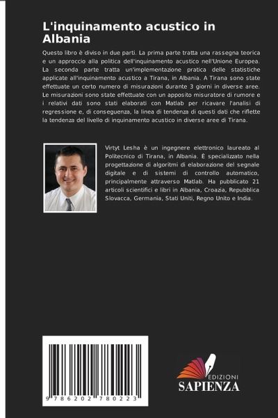 Questo libro è diviso in due parti. La prima parte tratta una rassegna teorica e un approccio alla politica dell'inquinamento acustico nell'Unione Europea. La seconda parte tratta un'implementazione pratica delle statistiche applicate all'inquinamento acustico a Tirana, in Albania. A Tirana sono state effettuate un certo numero di misurazioni durante 3 giorni in diverse aree. Le misurazioni sono state effettuate con un apposito misuratore di rumore e i relativi dati sono stati elaborati con Matlab per ricavare l'analisi di regressione e, di conseguenza, la linea di tendenza di questi dati che riflette la tendenza del livello di inquinamento acustico in diverse aree di Tirana.