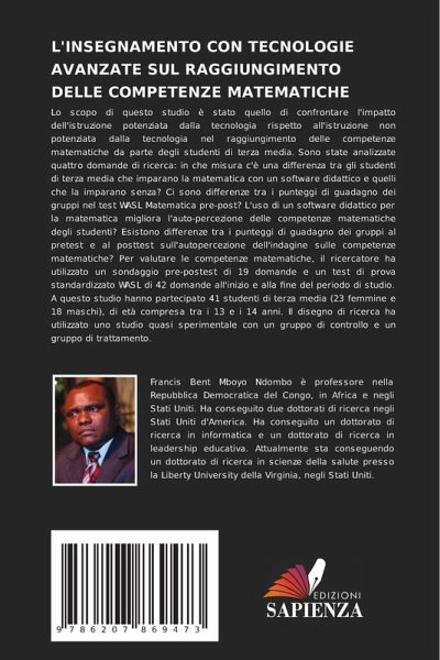 Lo scopo di questo studio è stato quello di confrontare l'impatto dell'istruzione potenziata dalla tecnologia rispetto all'istruzione non potenziata dalla tecnologia nel raggiungimento delle competenze matematiche da parte degli studenti di terza media. Sono state analizzate quattro domande di ricerca: in che misura c'è una differenza tra gli studenti di terza media che imparano la matematica con un software didattico e quelli che la imparano senza? Ci sono differenze tra i punteggi di guadagno dei gruppi nel test WASL Matematica pre-post? L'uso di un software didattico per la matematica migliora l'auto-percezione delle competenze matematiche degli studenti? Esistono differenze tra i punteggi di guadagno dei gruppi al pretest e al posttest sull'autopercezione dell'indagine sulle competenze matematiche? Per valutare le competenze matematiche, il ricercatore ha utilizzato un sondaggio pre-postest di 19 domande e un test di prova standardizzato WASL di 42 domande all'inizio e alla fine del periodo di studio. A questo studio hanno partecipato 41 studenti di terza media (23 femmine e 18 maschi), di età compresa tra i 13 e i 14 anni. Il disegno di ricerca ha utilizzato uno studio quasi sperimentale con un gruppo di controllo e un gruppo di trattamento.