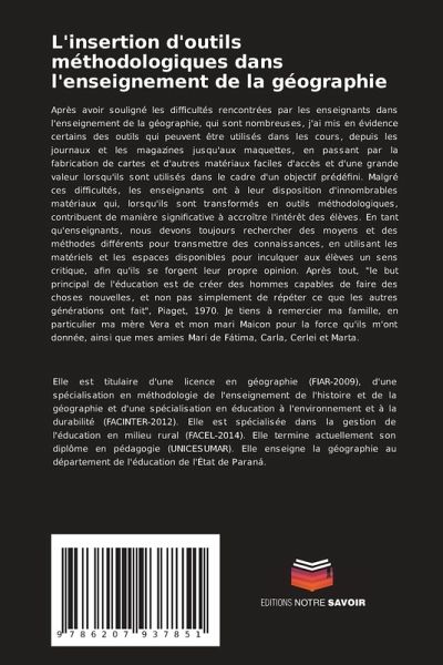 Après avoir souligné les difficultés rencontrées par les enseignants dans l'enseignement de la géographie, qui sont nombreuses, j'ai mis en évidence certains des outils qui peuvent être utilisés dans les cours, depuis les journaux et les magazines jusqu'aux maquettes, en passant par la fabrication de cartes et d'autres matériaux faciles d'accès et d'une grande valeur lorsqu'ils sont utilisés dans le cadre d'un objectif prédéfini. Malgré ces difficultés, les enseignants ont à leur disposition d'innombrables matériaux qui, lorsqu'ils sont transformés en outils méthodologiques, contribuent de manière significative à accroître l'intérêt des élèves. En tant qu'enseignants, nous devons toujours rechercher des moyens et des méthodes différents pour transmettre des connaissances, en utilisant les matériels et les espaces disponibles pour inculquer aux élèves un sens critique, afin qu'ils se forgent leur propre opinion. Après tout, "le but principal de l'éducation est de créer des hommes capables de faire des choses nouvelles, et non pas simplement de répéter ce que les autres générations ont fait", Piaget, 1970. Je tiens à remercier ma famille, en particulier ma mère Vera et mon mari Maicon pour la force qu'ils m'ont donnée, ainsi que mes amies Mari de Fátima, Carla, Cerlei et Marta.