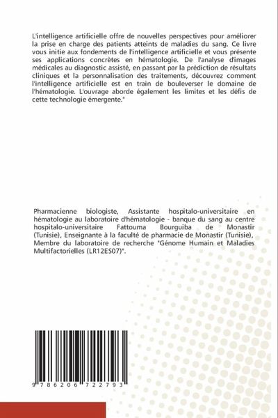 L'intelligence artificielle offre de nouvelles perspectives pour améliorer la prise en charge des patients atteints de maladies du sang. Ce livre vous initie aux fondements de l'intelligence artificielle et vous présente ses applications concrètes en hématologie. De l'analyse d'images médicales au diagnostic assisté, en passant par la prédiction de résultats cliniques et la personnalisation des traitements, découvrez comment l'intelligence artificielle est en train de bouleverser le domaine de l'hématologie. L'ouvrage aborde également les limites et les défis de cette technologie émergente."